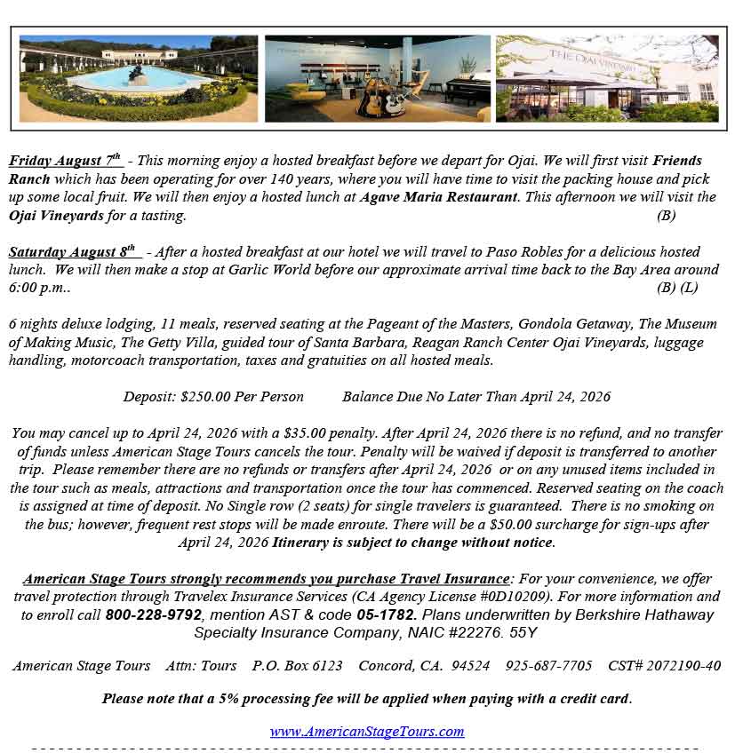 Our tours are designed with leisurely travel in mind for Group Tours and Senior Tours in the San Francisco Bay Area